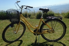 Adult 7-speed bicycle with a basked fastened in the front included in the price.