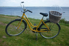 A basket fastened on the luggage carrier