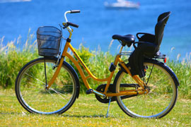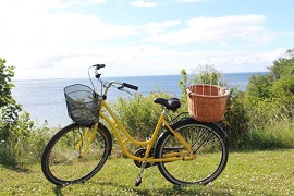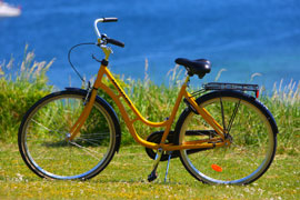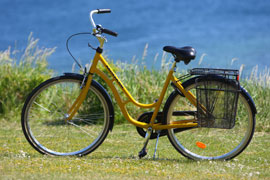 Vuxencykel med sju växlar och korg fram som ingår i priset.