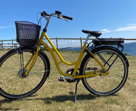 Cykel med elmotor som hjälper till att driva när ni trampar. Batteriet håller hela dagen.